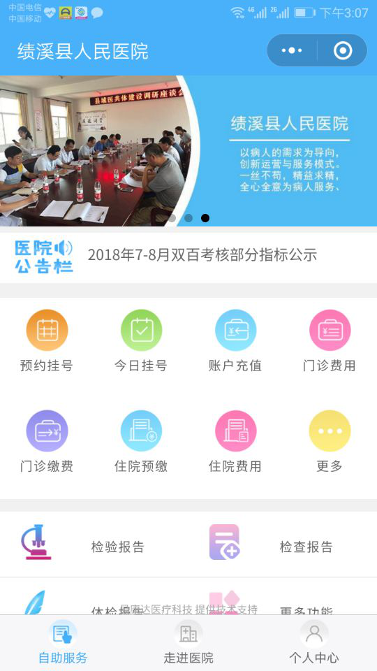 卡、预约挂号、候诊、缴费、取报告、检查预约,获取就诊、费用、候诊信息等便捷服务。从根本上解决挂号、缴